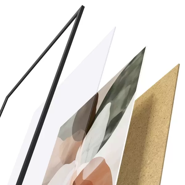 Das Poster besteht aus einem Rahmen, Plexiglas, einem gedruckten Bild und einer Rückwand aus Spanplatten. Dank der Halterungen auf der Rückseite kann das Poster sofort an die Wand gehängt werden.