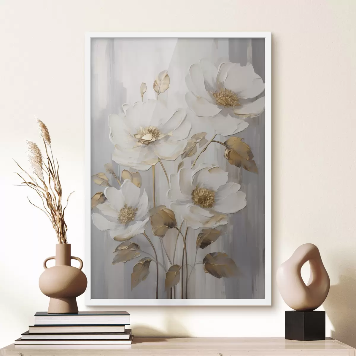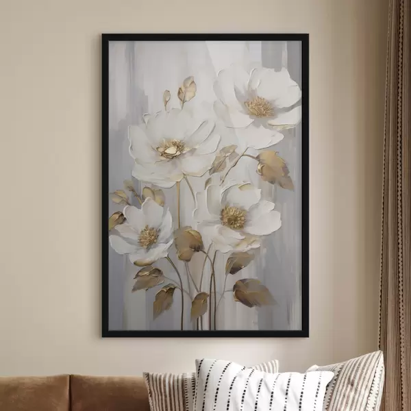 Poster Weiße Blumen mit gelben Akzenten auf einem strukturierten Hintergrund Nr f48722