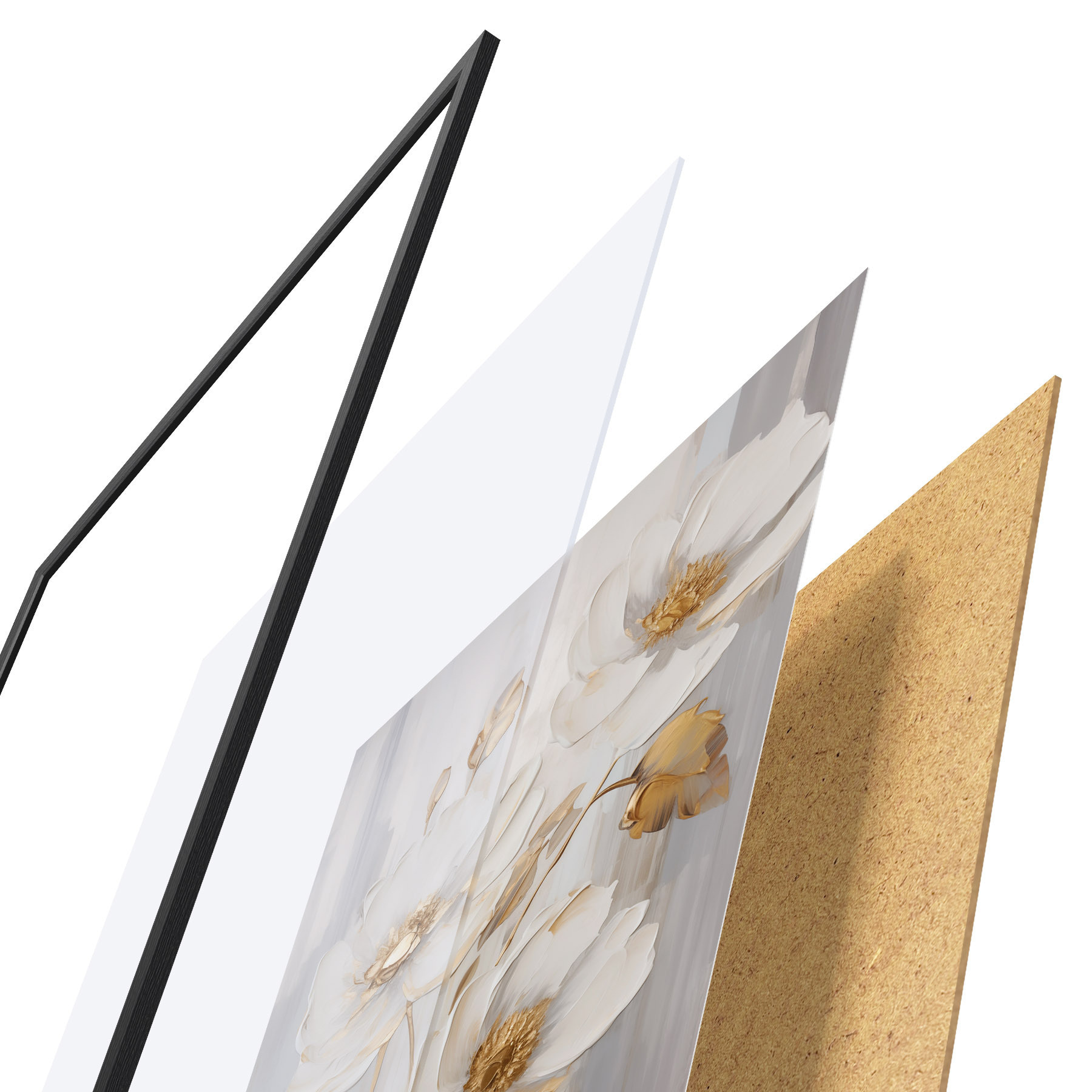Das Poster besteht aus einem Rahmen, Plexiglas, einem gedruckten Bild und einer Rückwand aus Spanplatten. Dank der Halterungen auf der Rückseite kann das Poster sofort an die Wand gehängt werden.