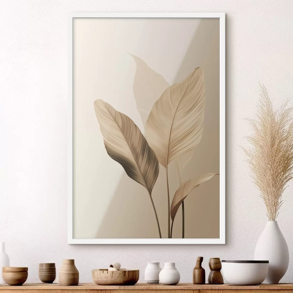Poster Große tropische Blätter in Beige- und Brauntönen, heller Hintergrund Nr f48726