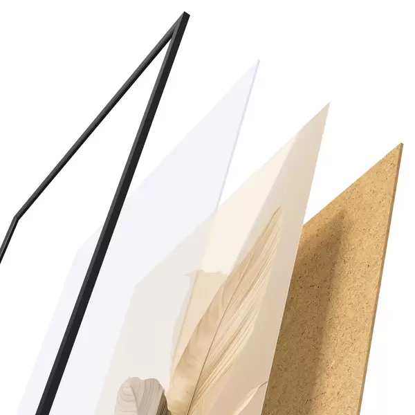 Das Poster besteht aus einem Rahmen, Plexiglas, einem gedruckten Bild und einer Rückwand aus Spanplatten. Dank der Halterungen auf der Rückseite kann das Poster sofort an die Wand gehängt werden.