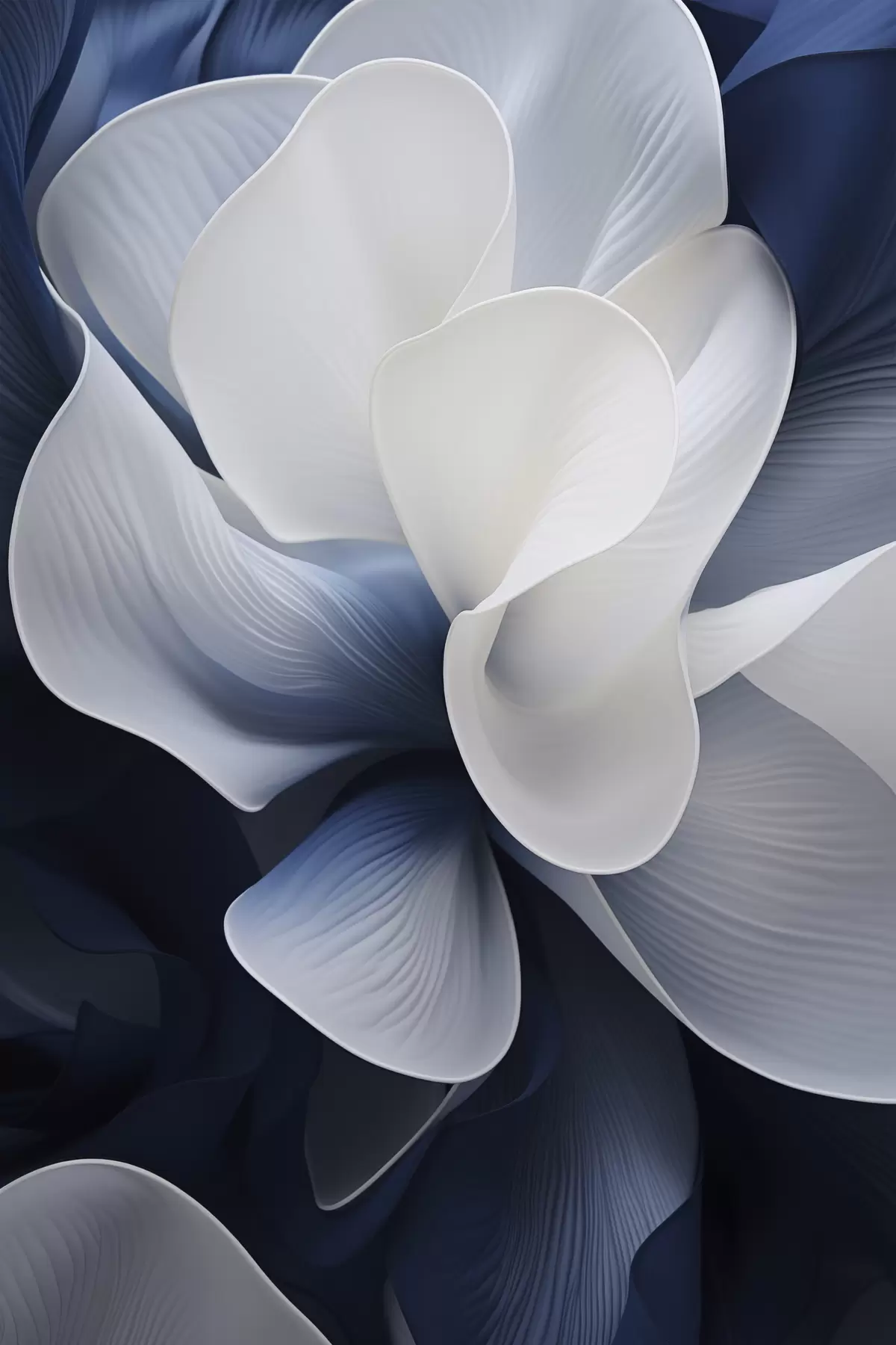Poster Abstrakte blau-weiße Blütenblätter vor dunklem Hintergrund Nr f48732