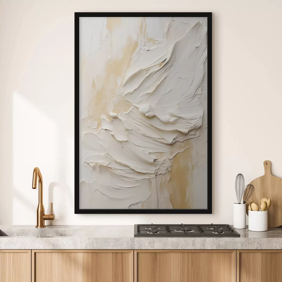 Poster Strukturierte Malerei in Creme- und Beigetönen im abstrakten Stil, minimalistische Kunst Nr f48738