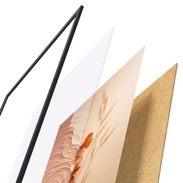 Das Poster besteht aus einem Rahmen, Plexiglas, einem gedruckten Bild und einer Rückwand aus Spanplatten. Dank der Halterungen auf der Rückseite kann das Poster sofort an die Wand gehängt werden.