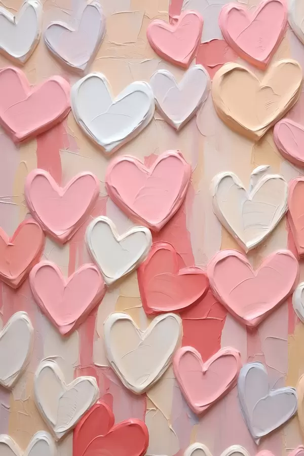 Poster Herzen in verschiedenen Pfirsich- und Rosatönen in einem strukturierten, gemalten Stil Nr f48751