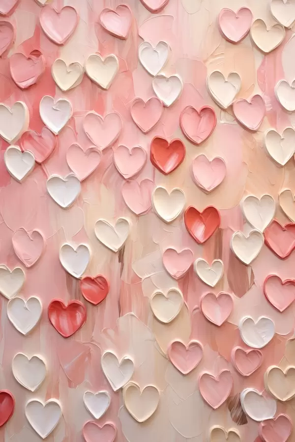 Poster Herzen in verschiedenen Pfirsich- und Rosatönen in einem strukturierten, gemalten Stil Nr f48752