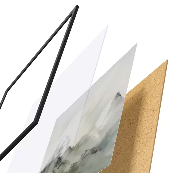 Das Poster besteht aus einem Rahmen, Plexiglas, einem gedruckten Bild und einer Rückwand aus Spanplatten. Dank der Halterungen auf der Rückseite kann das Poster sofort an die Wand gehängt werden.