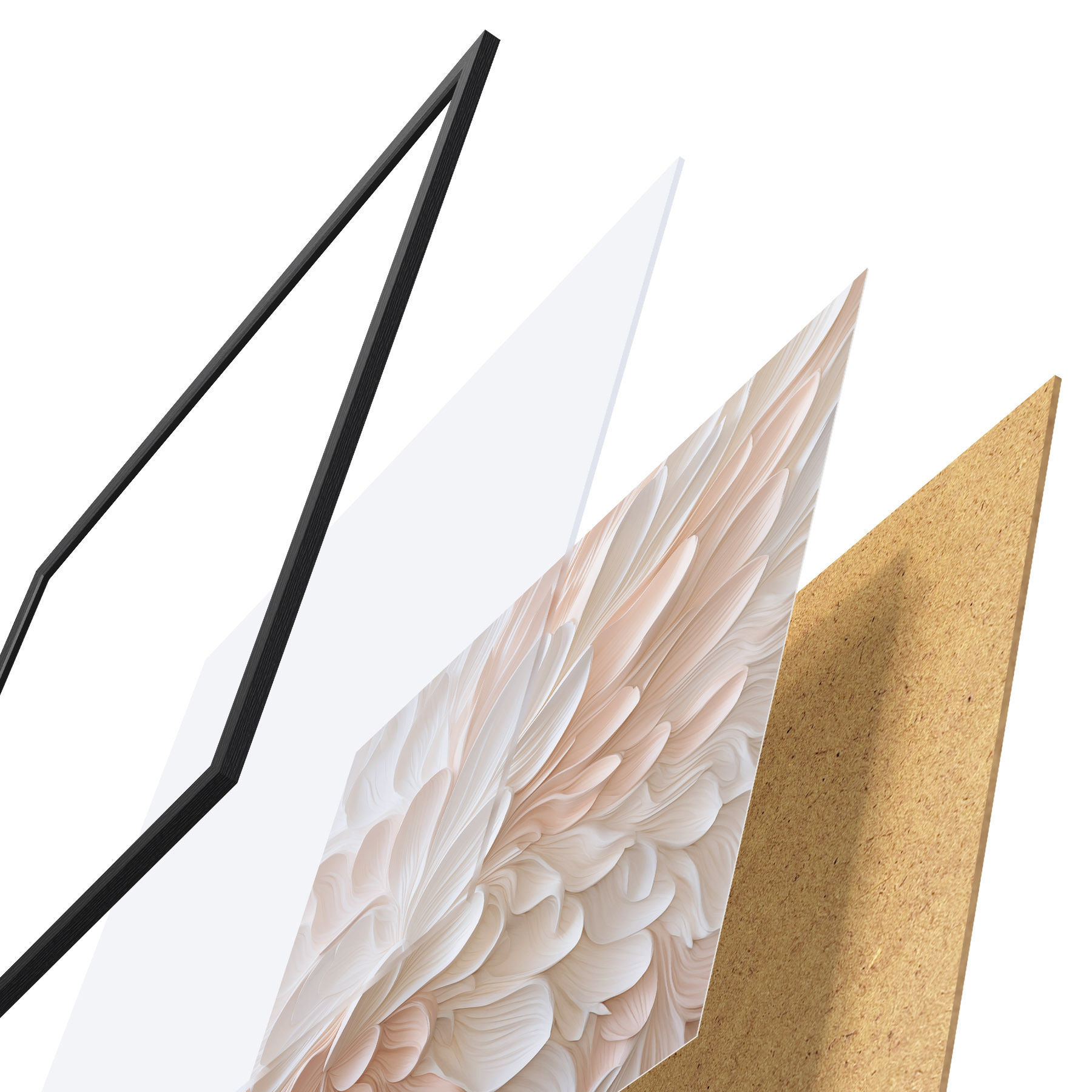 Das Poster besteht aus einem Rahmen, Plexiglas, einem gedruckten Bild und einer Rückwand aus Spanplatten. Dank der Halterungen auf der Rückseite kann das Poster sofort an die Wand gehängt werden.