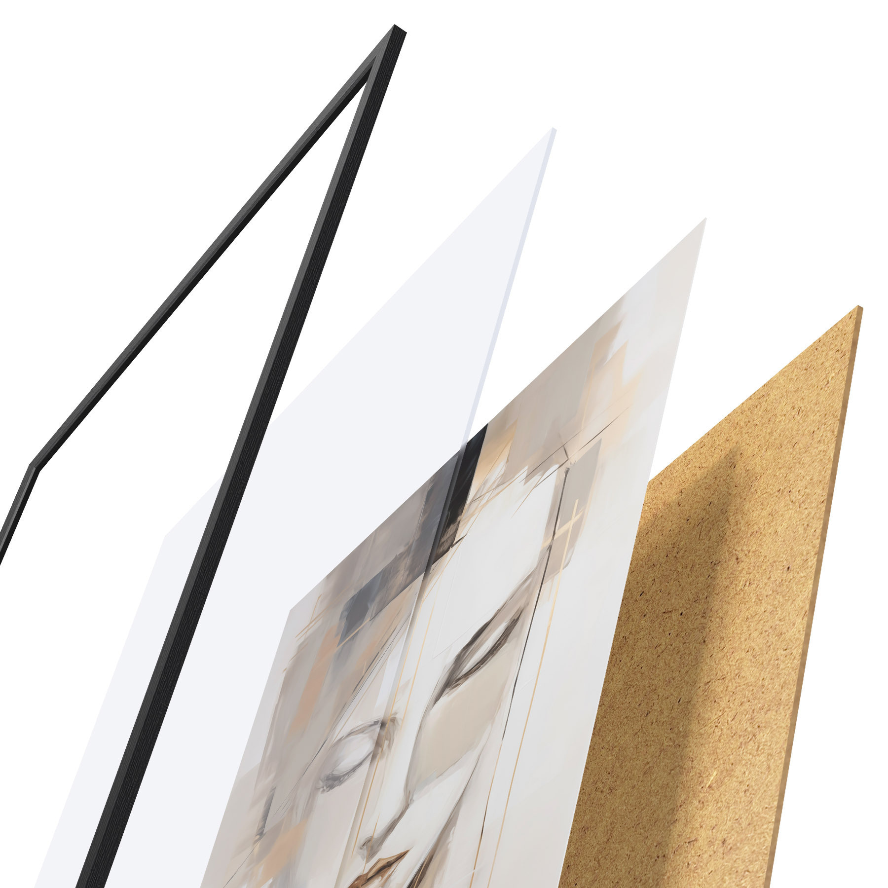 Das Poster besteht aus einem Rahmen, Plexiglas, einem gedruckten Bild und einer Rückwand aus Spanplatten. Dank der Halterungen auf der Rückseite kann das Poster sofort an die Wand gehängt werden.