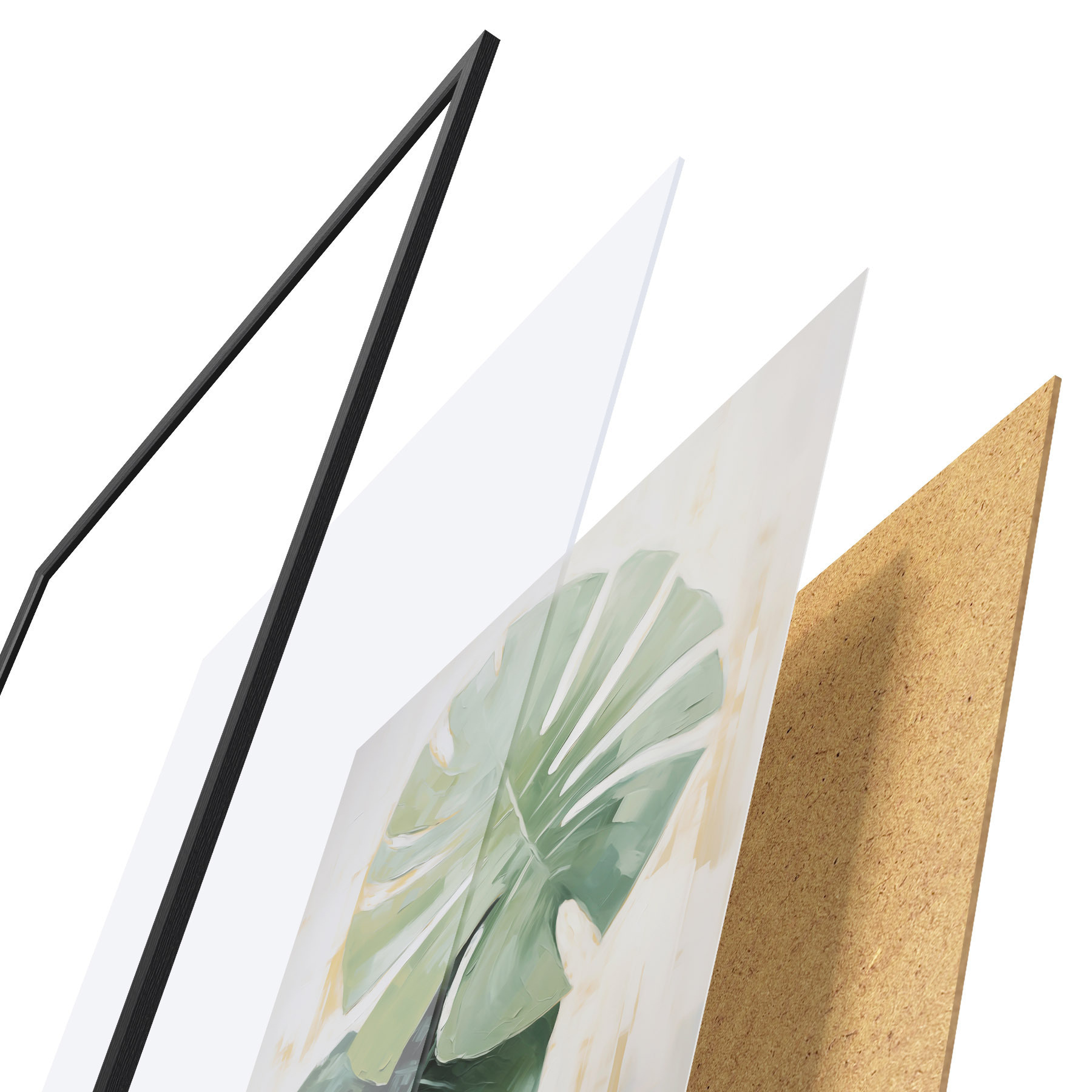Das Poster besteht aus einem Rahmen, Plexiglas, einem gedruckten Bild und einer Rückwand aus Spanplatten. Dank der Halterungen auf der Rückseite kann das Poster sofort an die Wand gehängt werden.