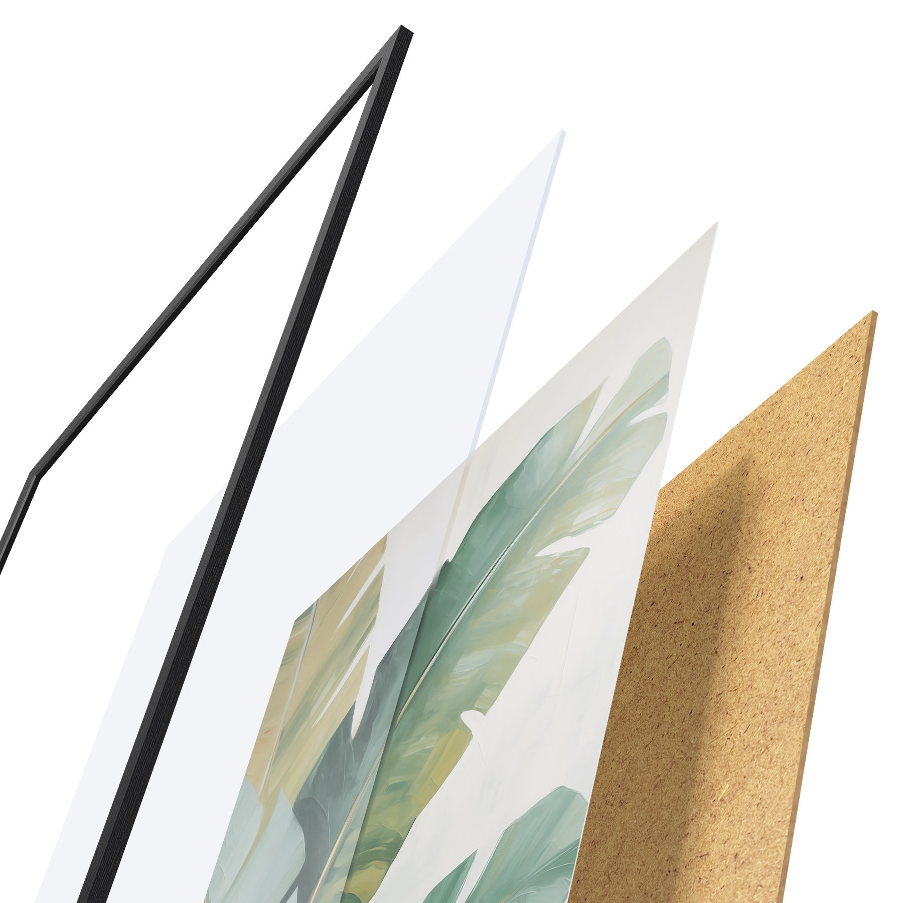 Das Poster besteht aus einem Rahmen, Plexiglas, einem gedruckten Bild und einer Rückwand aus Spanplatten. Dank der Halterungen auf der Rückseite kann das Poster sofort an die Wand gehängt werden.