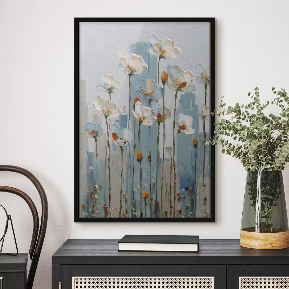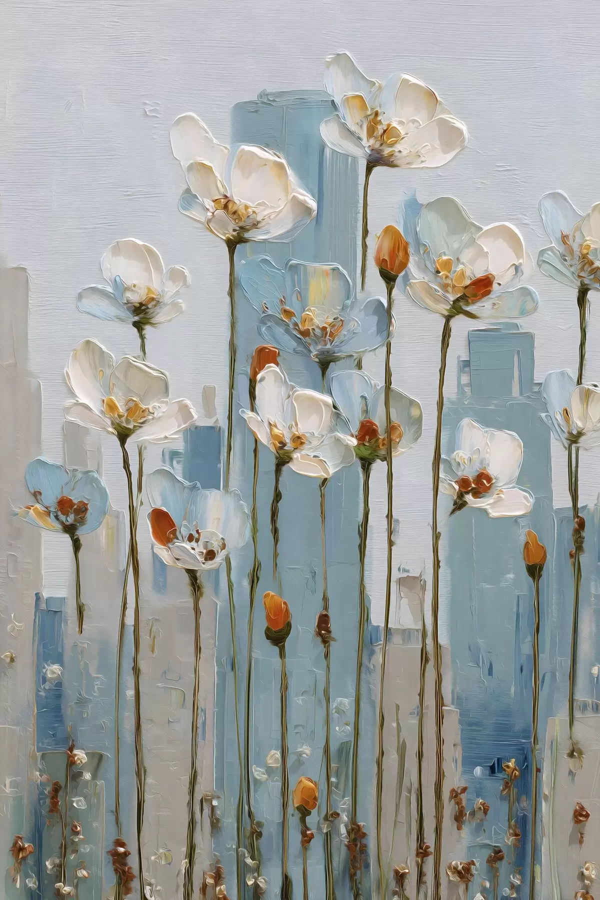 Poster Blumen vor einer städtischen Kulisse, im Stil eines Ölgemäldes f48785