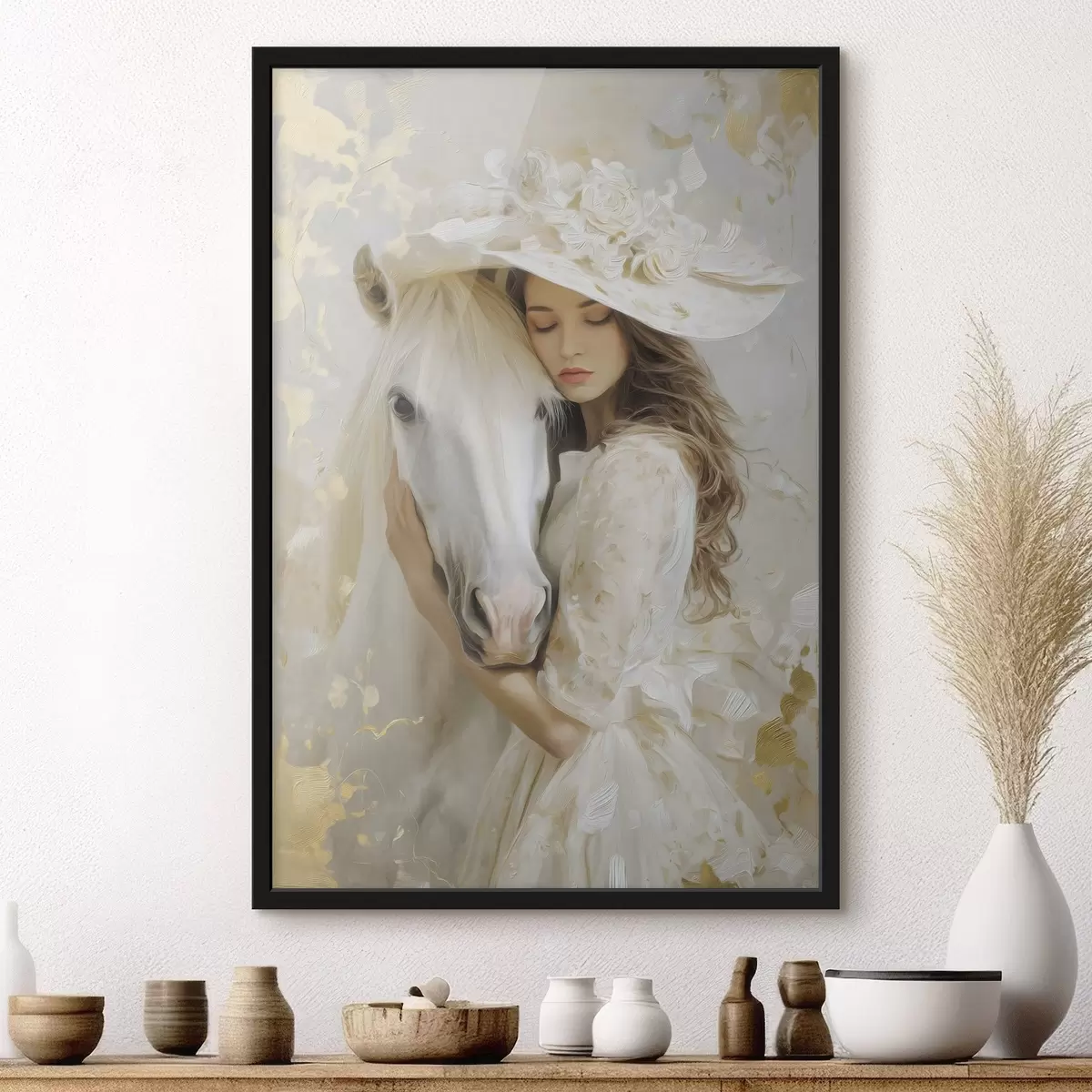 Poster ein Mädchen mit einem weißen Pferd, im Ölstil gemalt f48790