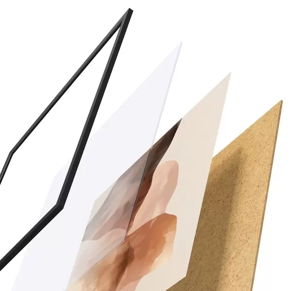 Das Poster besteht aus einem Rahmen, Plexiglas, einem gedruckten Bild und einer Rückwand aus Spanplatten. Dank der Halterungen auf der Rückseite kann das Poster sofort an die Wand gehängt werden.