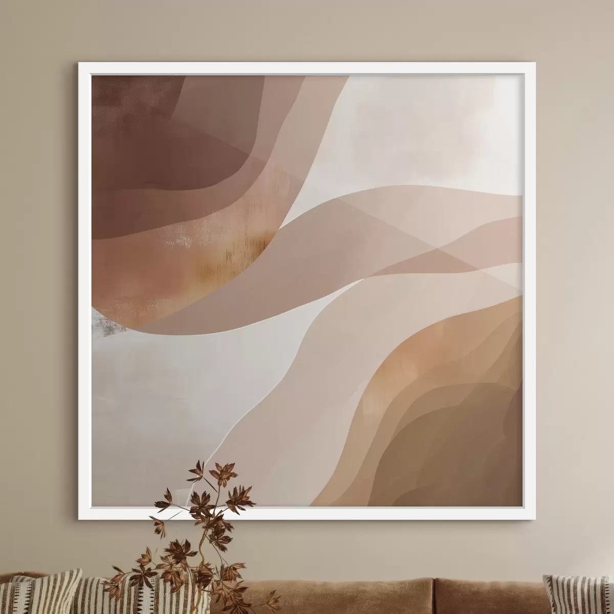 Poster Abstrakte, wellenförmige Formen in einer kaffeebraunen Farbpalette f48836