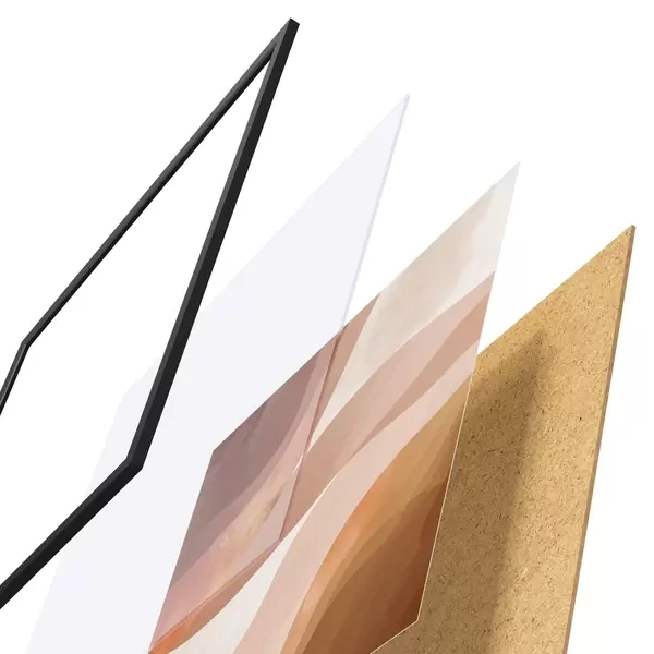 Das Poster besteht aus einem Rahmen, Plexiglas, einem gedruckten Bild und einer Rückwand aus Spanplatten. Dank der Halterungen auf der Rückseite kann das Poster sofort an die Wand gehängt werden.