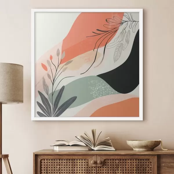 Poster Stilisierte Pflanzenmotive vor einem Hintergrund aus Aquarellflecken Nr f48839