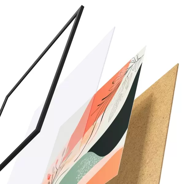 Das Poster besteht aus einem Rahmen, Plexiglas, einem gedruckten Bild und einer Rückwand aus Spanplatten. Dank der Halterungen auf der Rückseite kann das Poster sofort an die Wand gehängt werden.