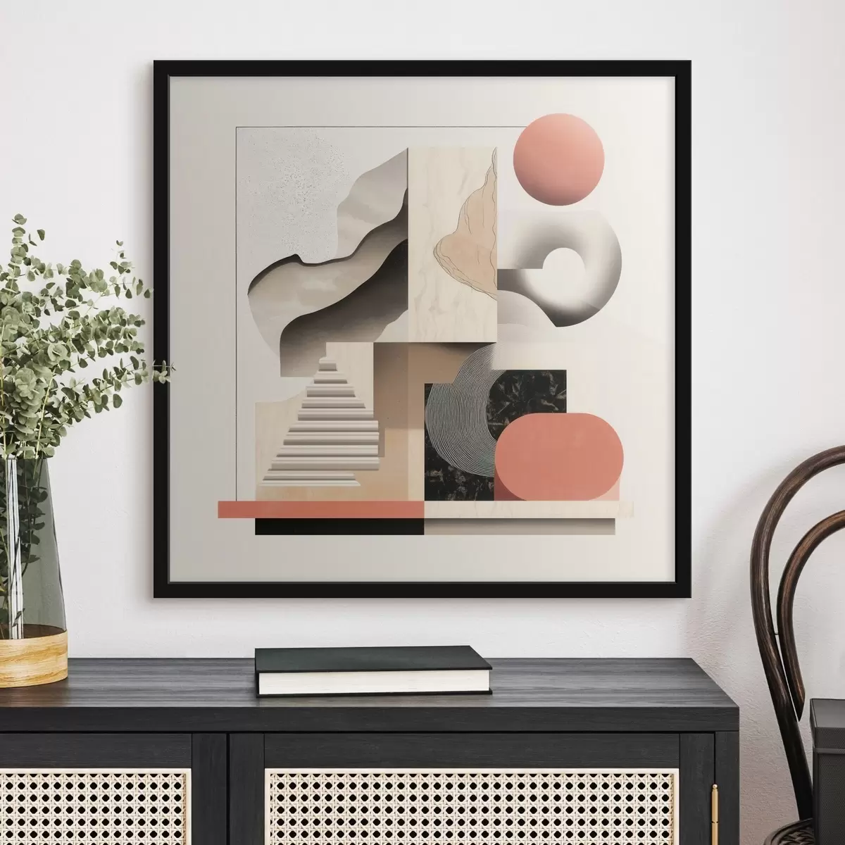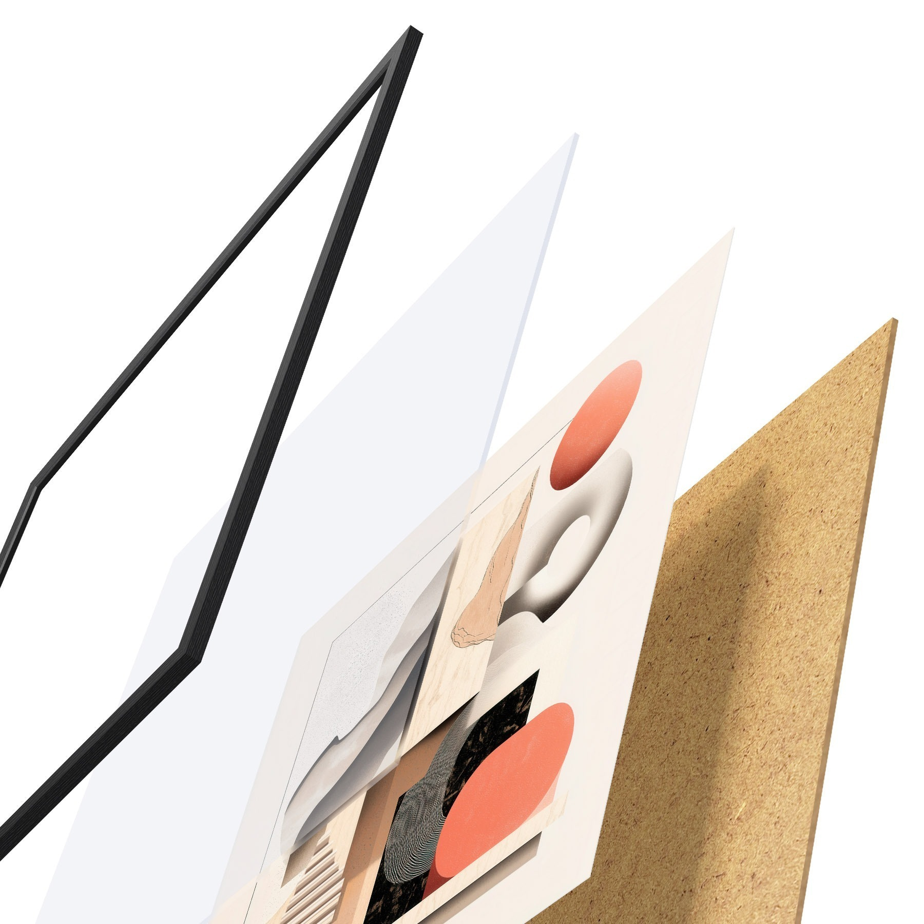 Das Poster besteht aus einem Rahmen, Plexiglas, einem gedruckten Bild und einer Rückwand aus Spanplatten. Dank der Halterungen auf der Rückseite kann das Poster sofort an die Wand gehängt werden.
