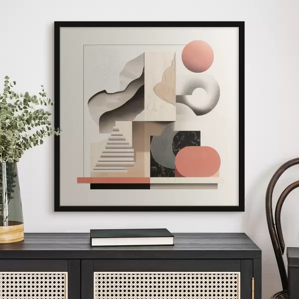 Poster Abstrakte Formen in einer beige-grauen Farbpalette in einem zeitgenössischen Malstil f48842