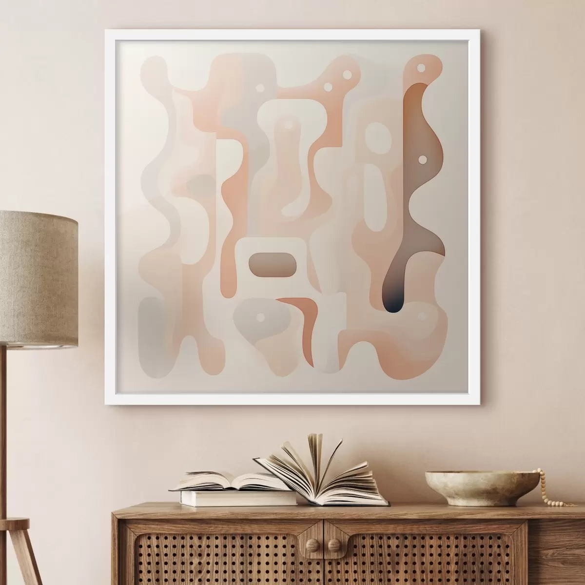 Poster Eine Harmonie aus geschwungenen Formen und einer natürlichen Farbpalette im Stil zeitgenössischer Kunstillustrationen f48845