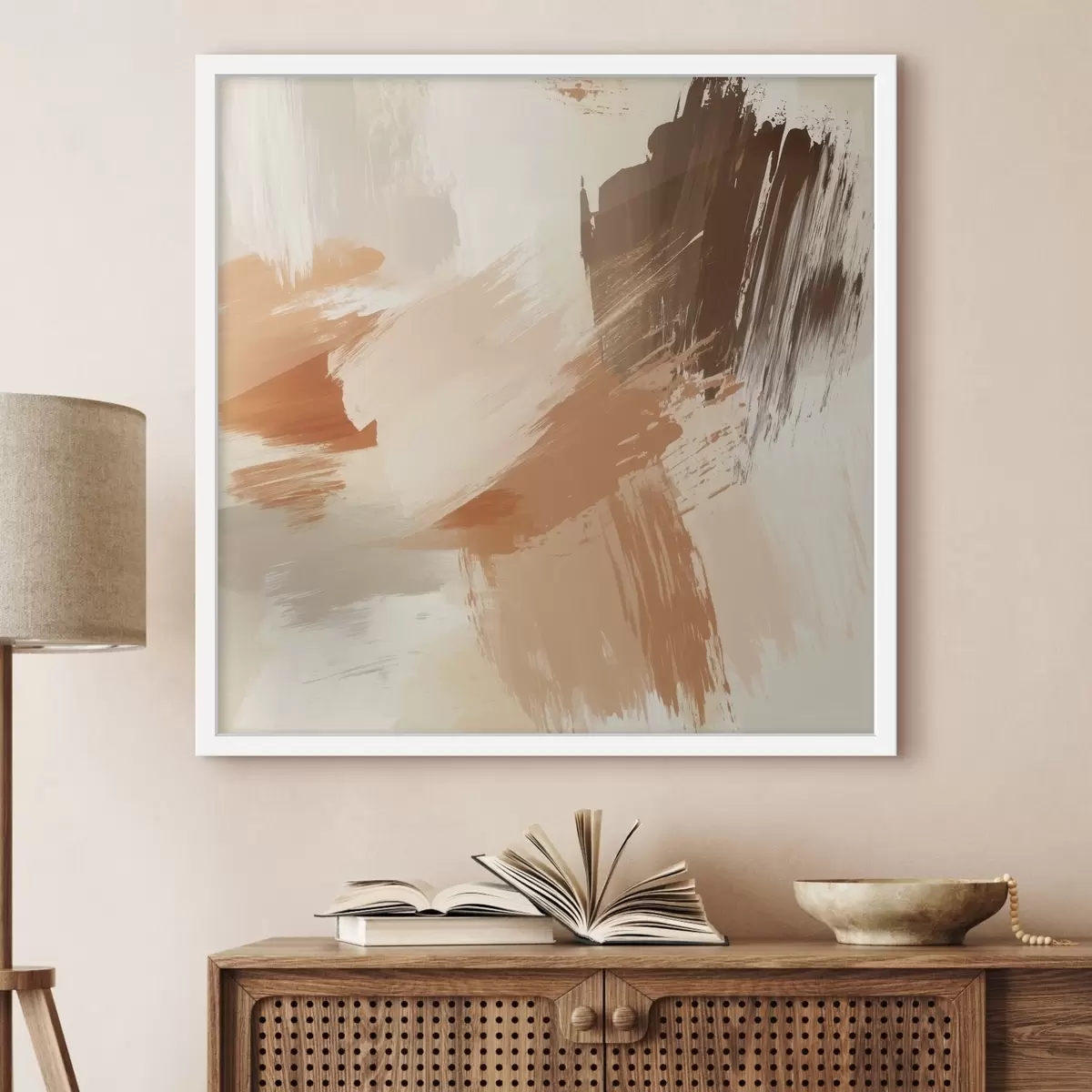 Poster Nachahmung abstrakter Pinselstriche in sandigen und braunen Farbtönen Nr f48857
