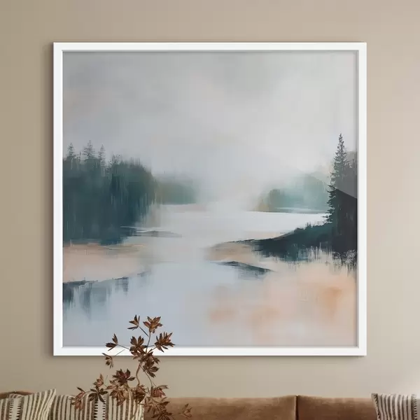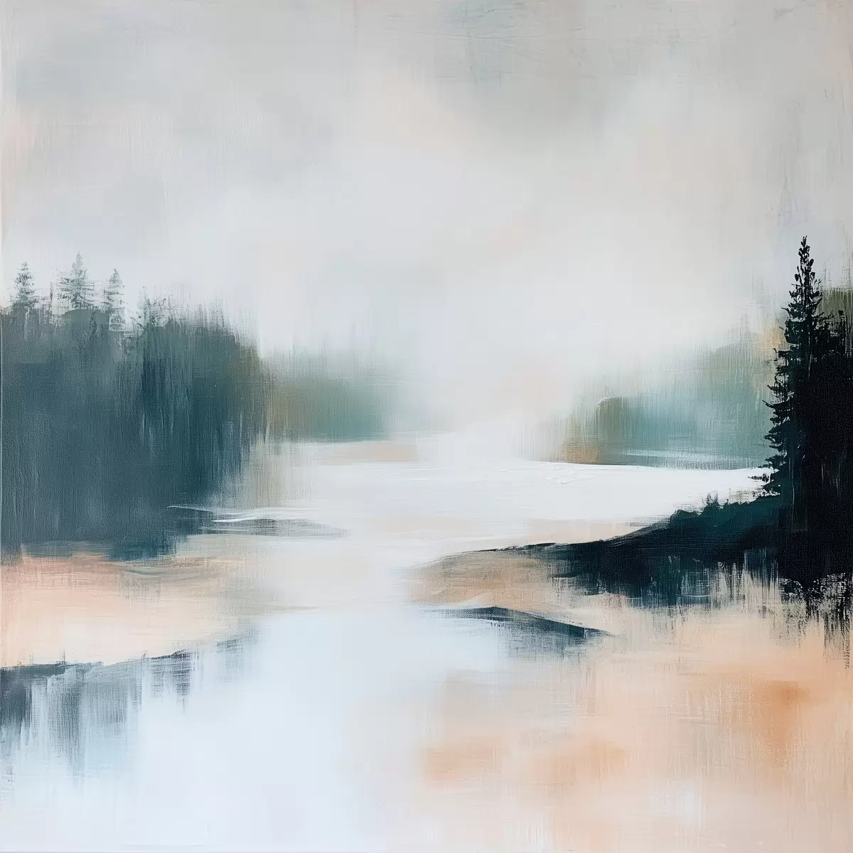 Poster Abstrakte Waldlandschaft in Rosa- und Blautönen in einem zeitgenössischen Malstil Nr f48862