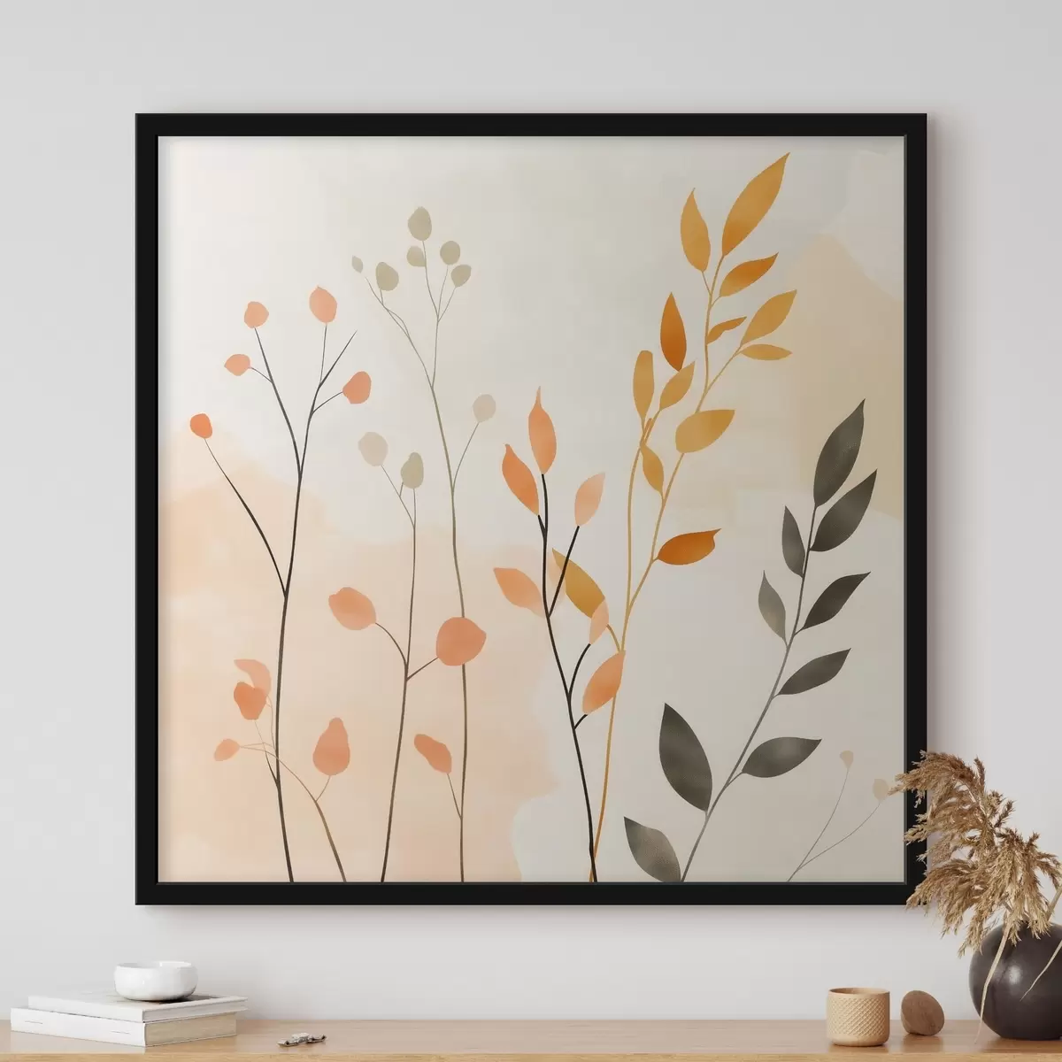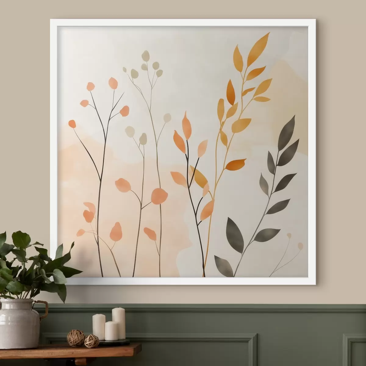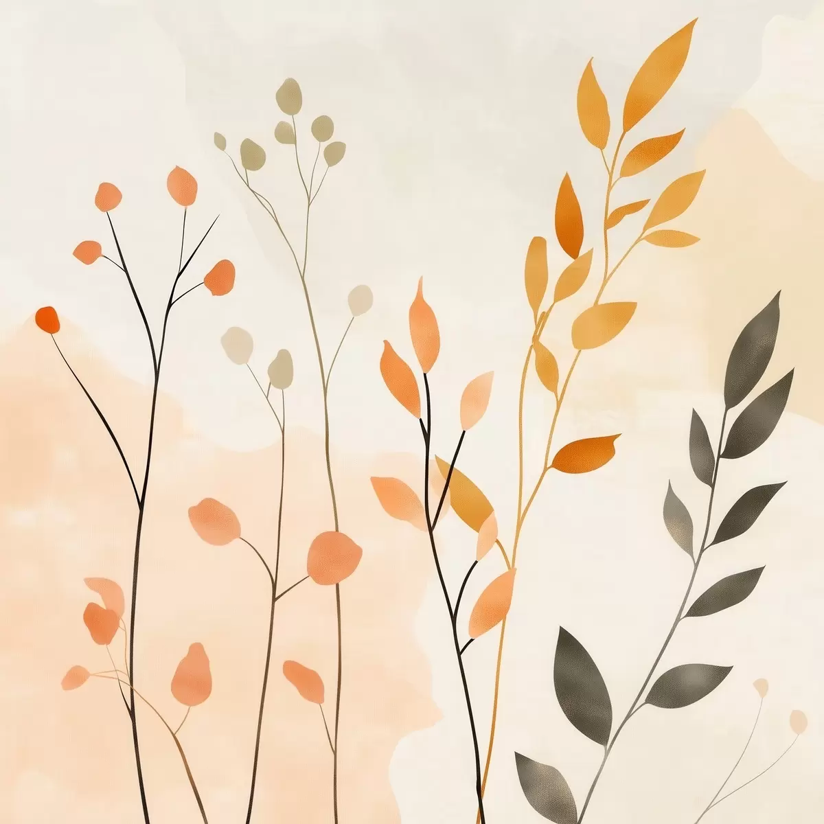 Poster Pastellkomposition mit zartem Blattwerk in einem zeitgenössischen Malstil f48873