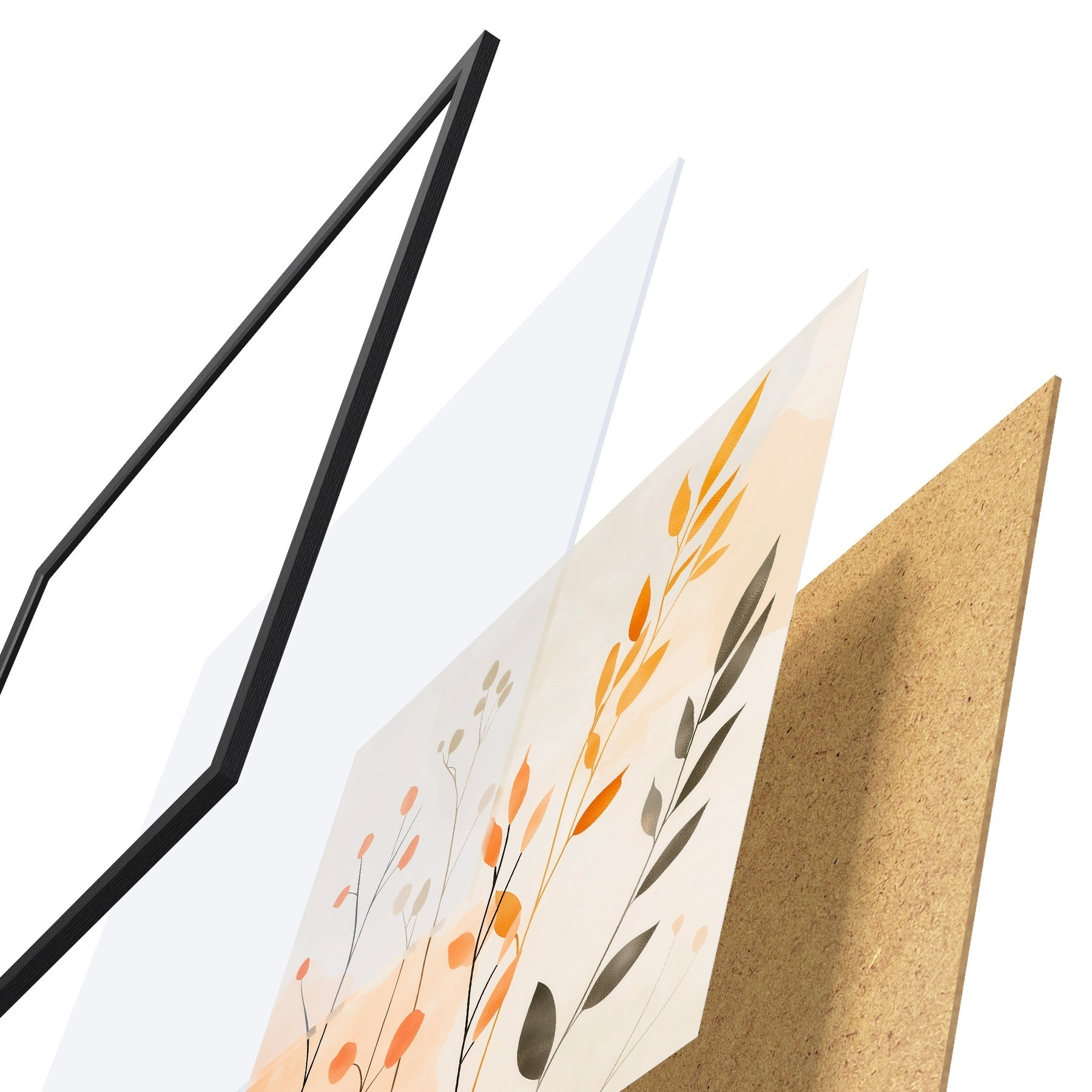 Das Poster besteht aus einem Rahmen, Plexiglas, einem gedruckten Bild und einer Rückwand aus Spanplatten. Dank der Halterungen auf der Rückseite kann das Poster sofort an die Wand gehängt werden.