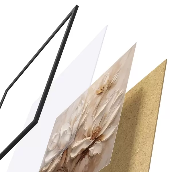 Das Poster besteht aus einem Rahmen, Plexiglas, einem gedruckten Bild und einer Rückwand aus Spanplatten. Dank der Halterungen auf der Rückseite kann das Poster sofort an die Wand gehängt werden.