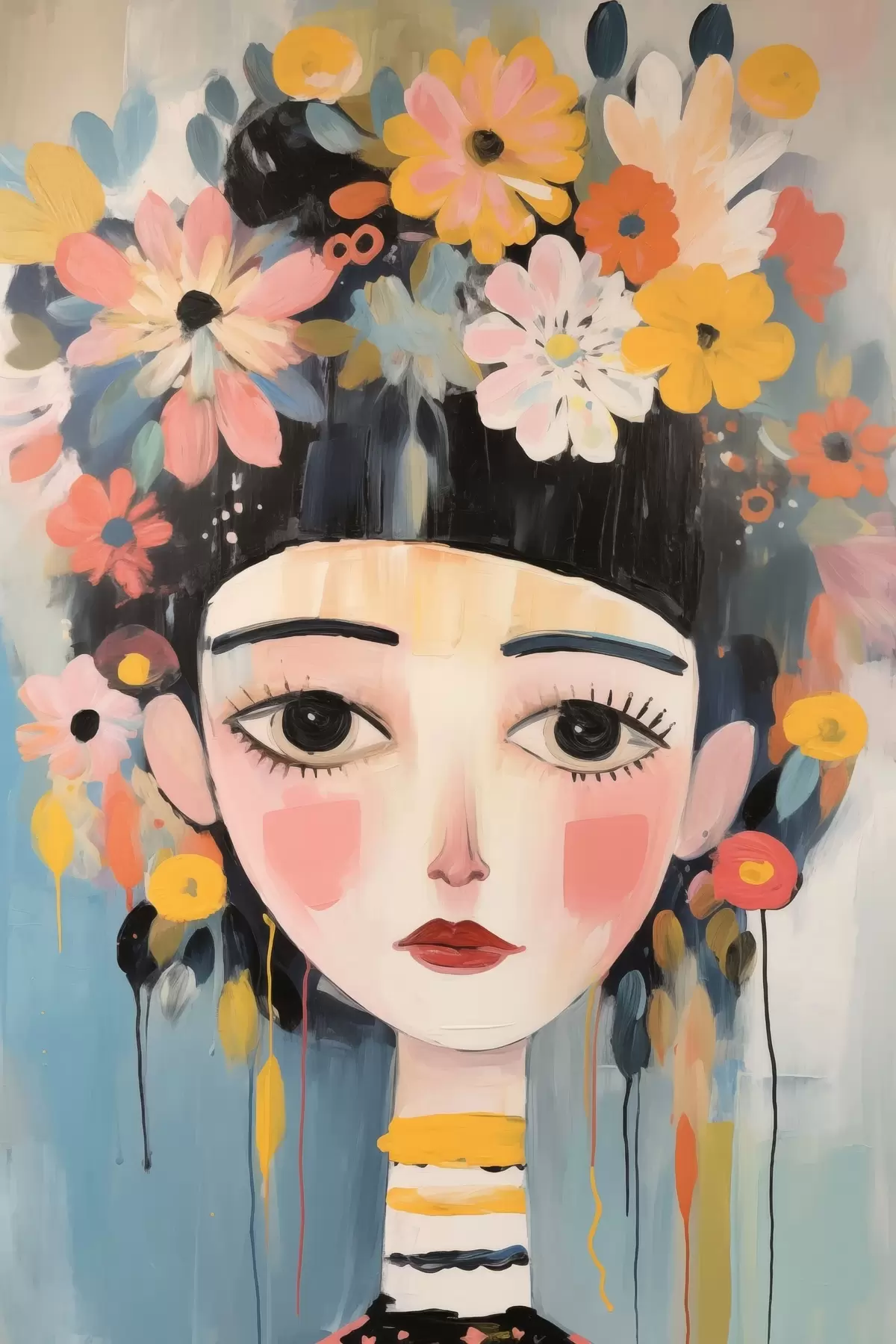Poster Porträt einer Frau mit Blumen im Haar, im abstrakten Stil Nr f48935