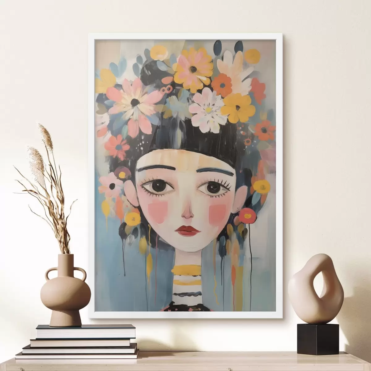 Poster Porträt einer Frau mit Blumen im Haar, im abstrakten Stil f48935