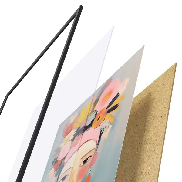 Das Poster besteht aus einem Rahmen, Plexiglas, einem gedruckten Bild und einer Rückwand aus Spanplatten. Dank der Halterungen auf der Rückseite kann das Poster sofort an die Wand gehängt werden.