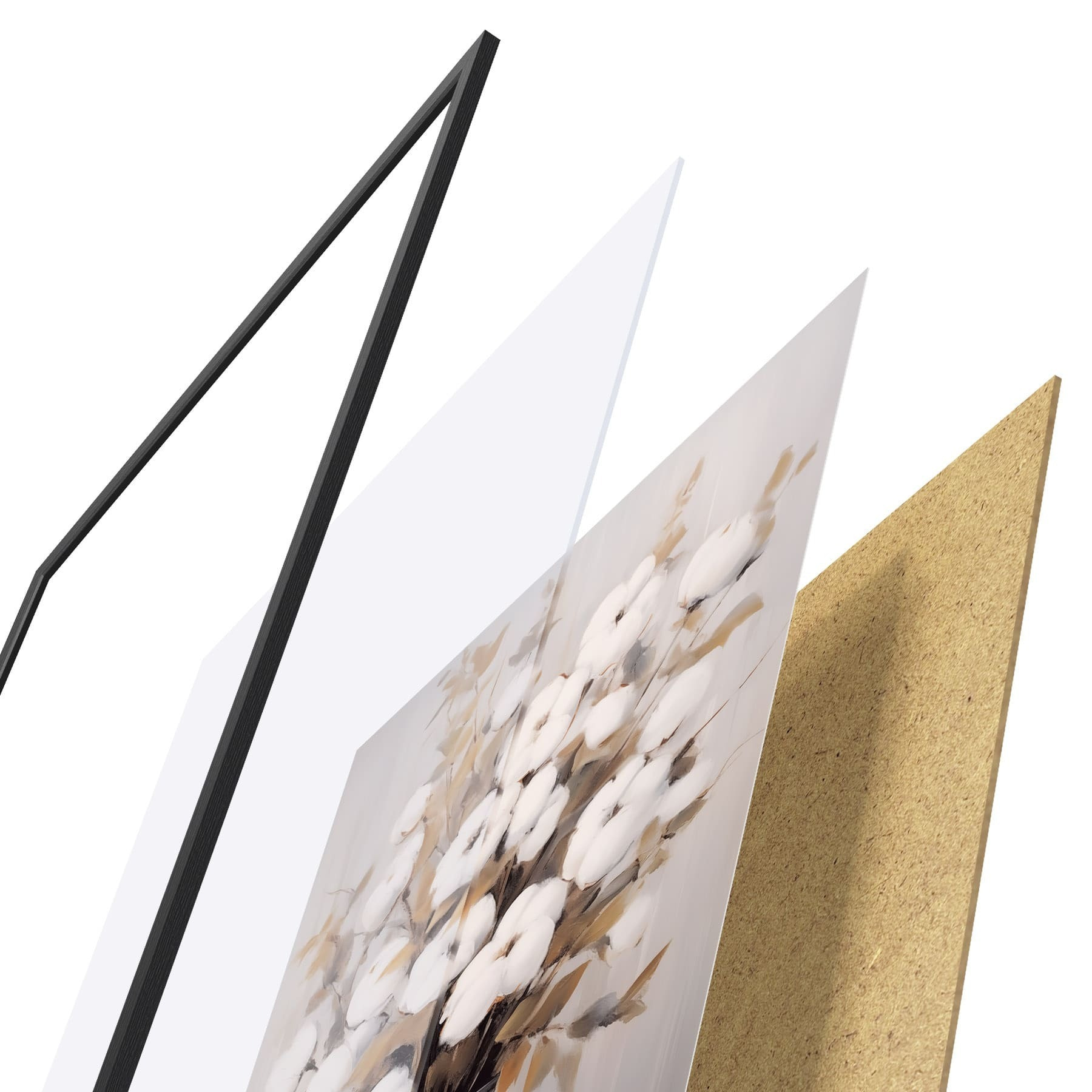 Das Poster besteht aus einem Rahmen, Plexiglas, einem gedruckten Bild und einer Rückwand aus Spanplatten. Dank der Halterungen auf der Rückseite kann das Poster sofort an die Wand gehängt werden.