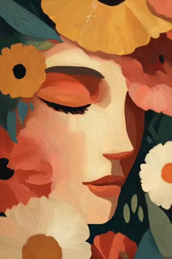 Poster Frauenporträt mit Blumen f48960