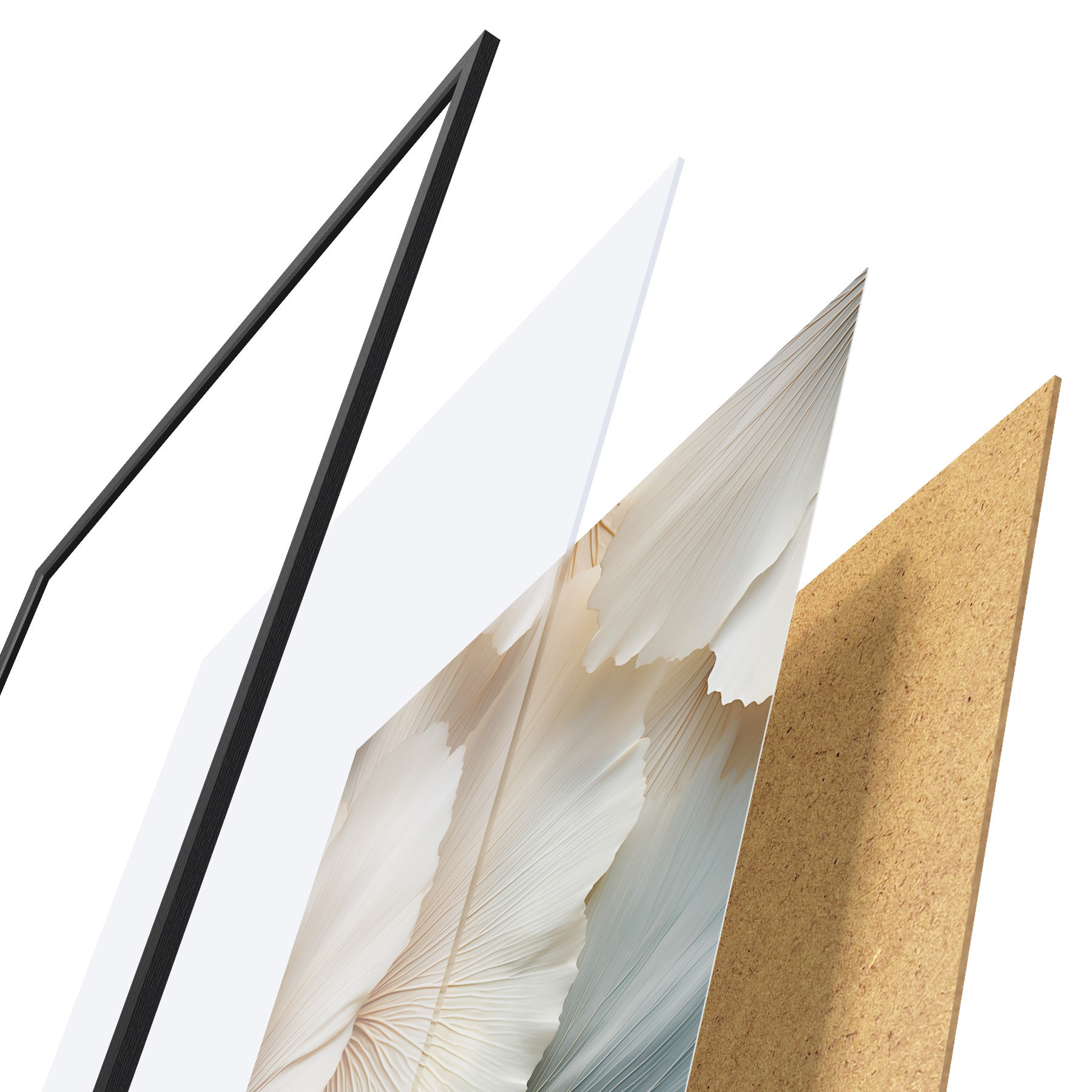 Das Poster besteht aus einem Rahmen, Plexiglas, einem gedruckten Bild und einer Rückwand aus Spanplatten. Dank der Halterungen auf der Rückseite kann das Poster sofort an die Wand gehängt werden.