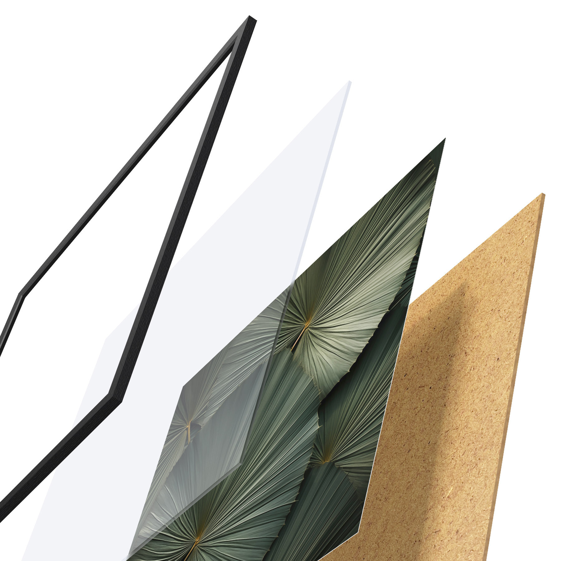 Das Poster besteht aus einem Rahmen, Plexiglas, einem gedruckten Bild und einer Rückwand aus Spanplatten. Dank der Halterungen auf der Rückseite kann das Poster sofort an die Wand gehängt werden.