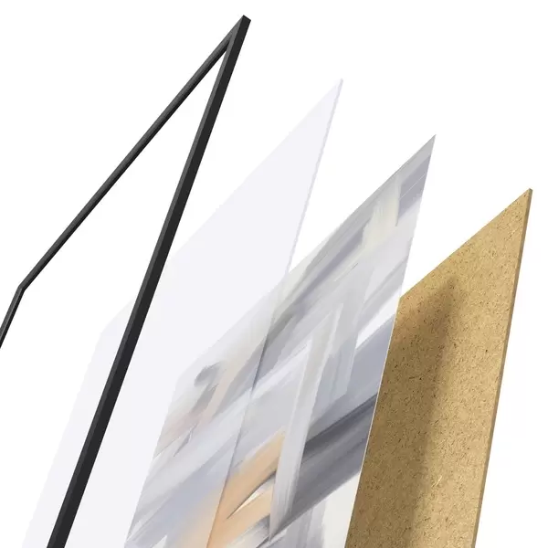 Das Poster besteht aus einem Rahmen, Plexiglas, einem gedruckten Bild und einer Rückwand aus Spanplatten. Dank der Halterungen auf der Rückseite kann das Poster sofort an die Wand gehängt werden.