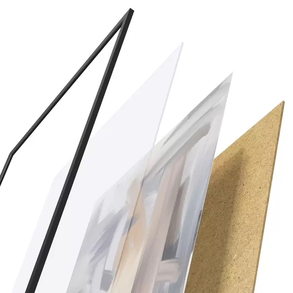 Das Poster besteht aus einem Rahmen, Plexiglas, einem gedruckten Bild und einer Rückwand aus Spanplatten. Dank der Halterungen auf der Rückseite kann das Poster sofort an die Wand gehängt werden.