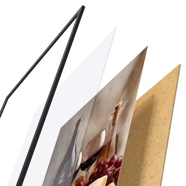 Das Poster besteht aus einem Rahmen, Plexiglas, einem gedruckten Bild und einer Rückwand aus Spanplatten. Dank der Halterungen auf der Rückseite kann das Poster sofort an die Wand gehängt werden.