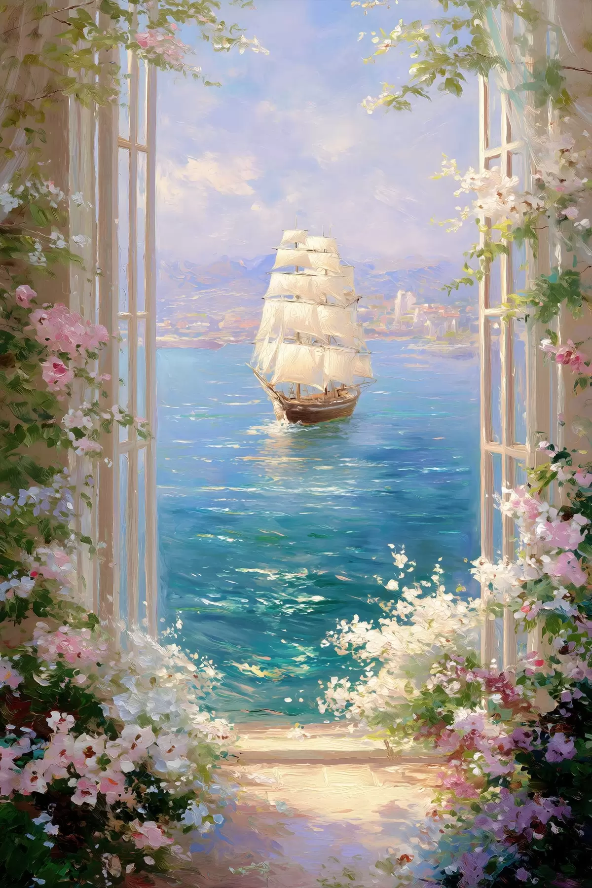 Poster eine blumige Ansicht des Schiffes f49004