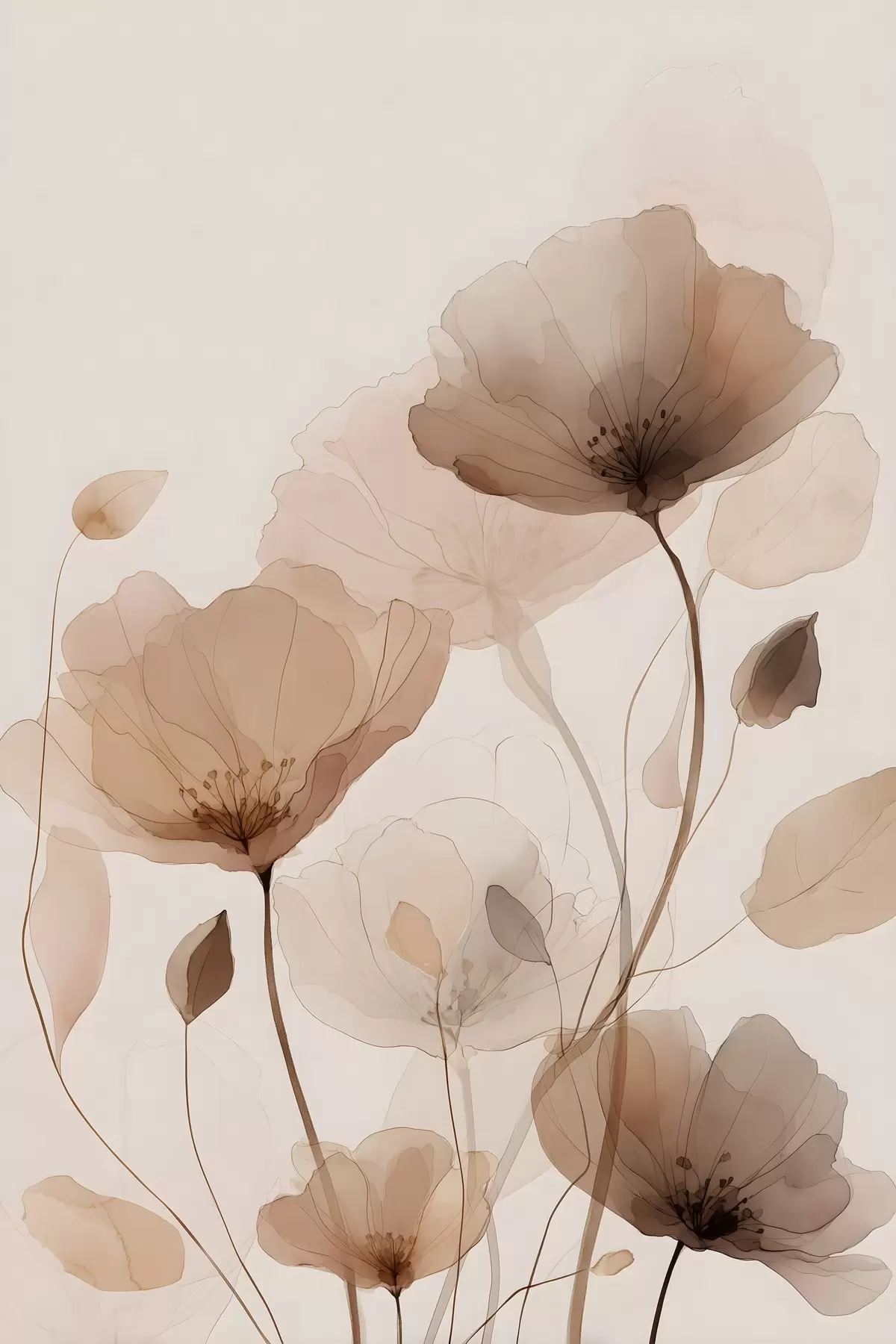 Poster Blumen in Aquarell in Brauntönen f49007