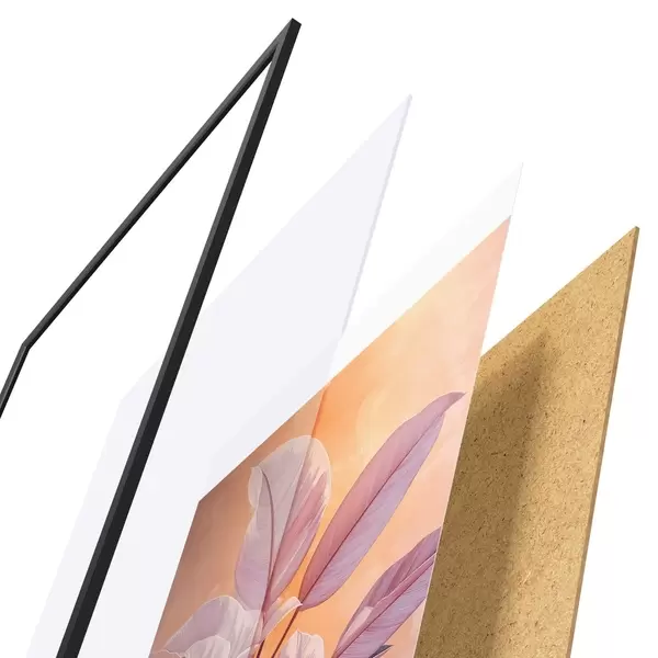 Das Poster besteht aus einem Rahmen, Plexiglas, einem gedruckten Bild und einer Rückwand aus Spanplatten. Dank der Halterungen auf der Rückseite kann das Poster sofort an die Wand gehängt werden.