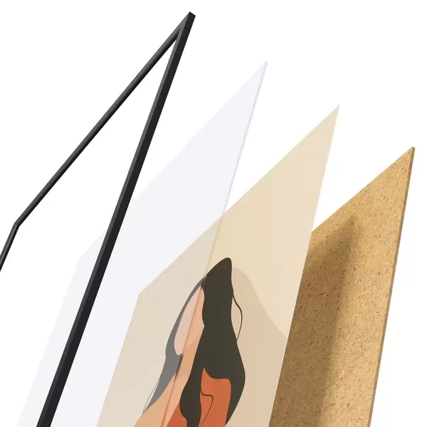 Das Poster besteht aus einem Rahmen, Plexiglas, einem gedruckten Bild und einer Rückwand aus Spanplatten. Dank der Halterungen auf der Rückseite kann das Poster sofort an die Wand gehängt werden.