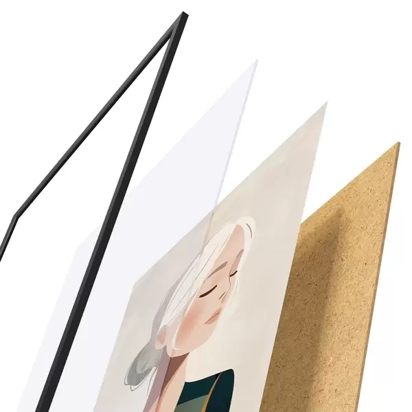 Das Poster besteht aus einem Rahmen, Plexiglas, einem gedruckten Bild und einer Rückwand aus Spanplatten. Dank der Halterungen auf der Rückseite kann das Poster sofort an die Wand gehängt werden.