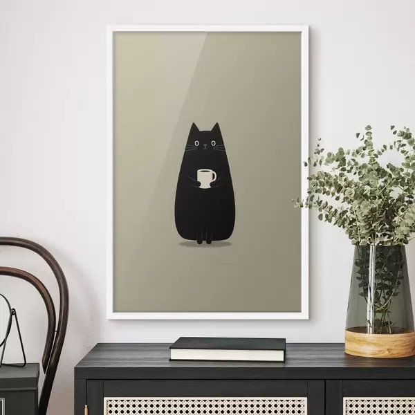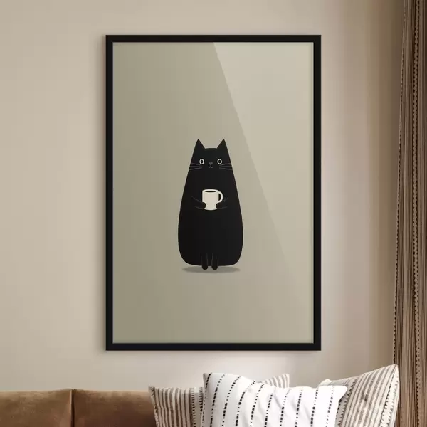 Poster Schwarze Katze mit einer Tasse Nr f49030