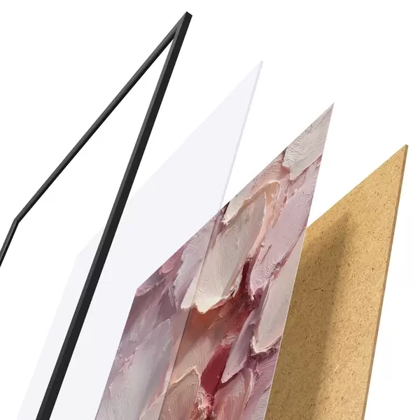 Das Poster besteht aus einem Rahmen, Plexiglas, einem gedruckten Bild und einer Rückwand aus Spanplatten. Dank der Halterungen auf der Rückseite kann das Poster sofort an die Wand gehängt werden.