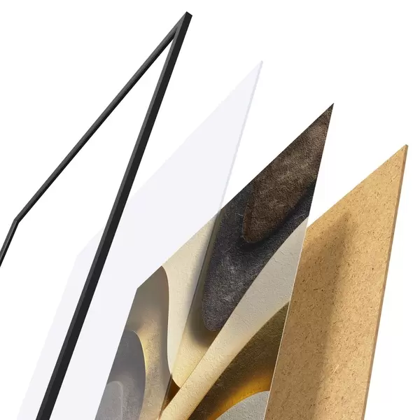 Das Poster besteht aus einem Rahmen, Plexiglas, einem gedruckten Bild und einer Rückwand aus Spanplatten. Dank der Halterungen auf der Rückseite kann das Poster sofort an die Wand gehängt werden.