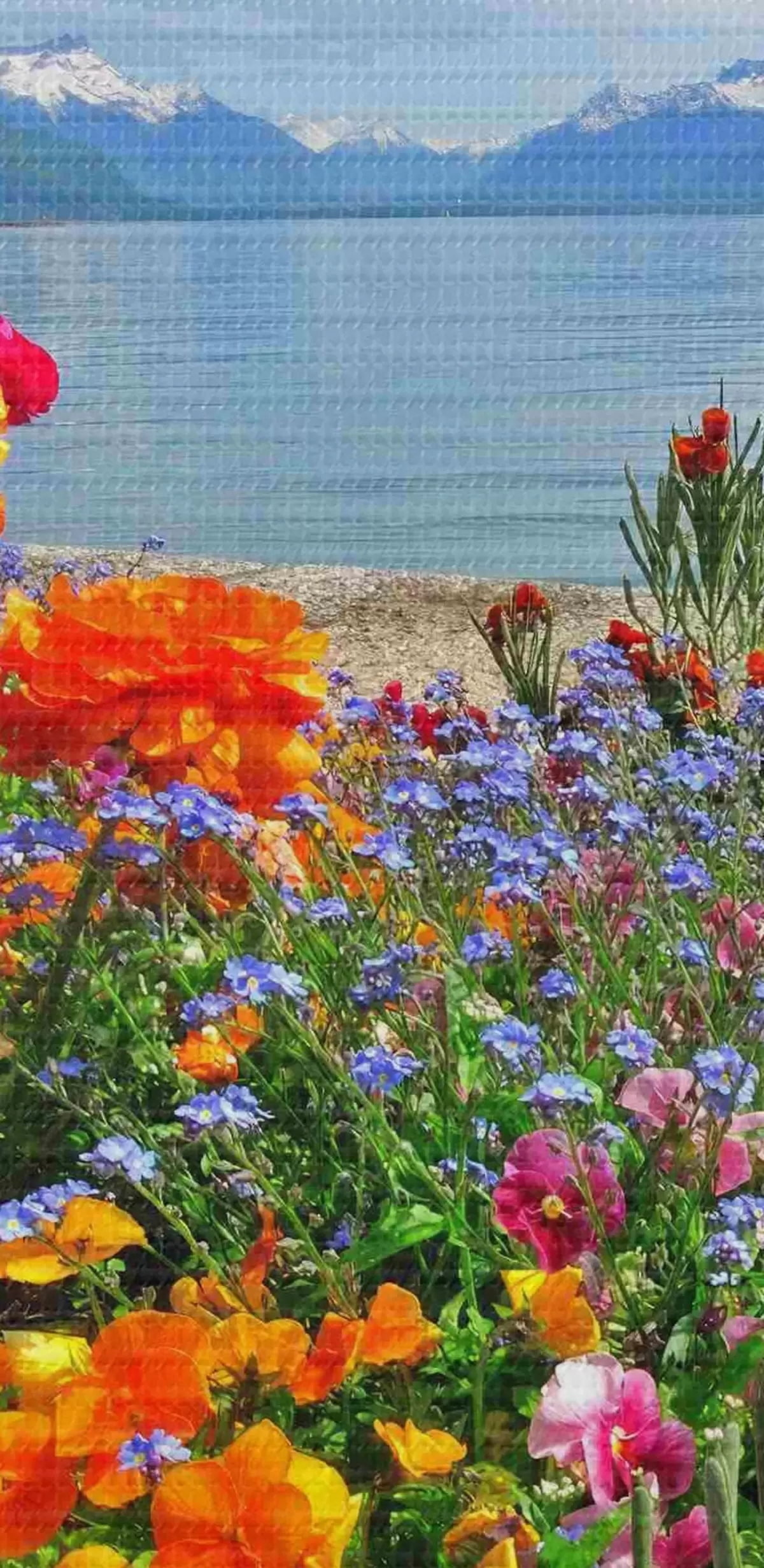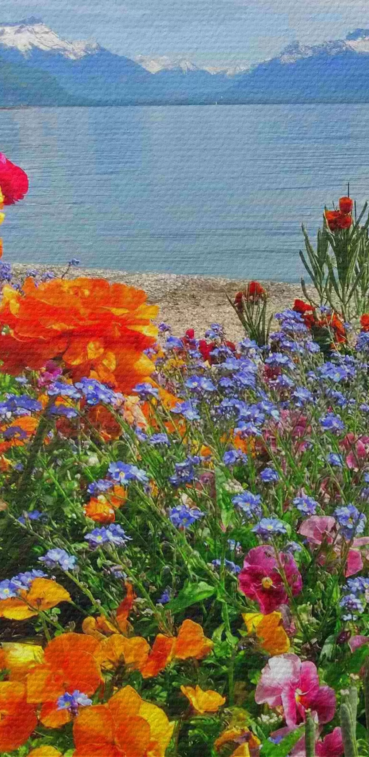 Runde Wandbilder Wasser, Himmel und Blumen Nr r00006