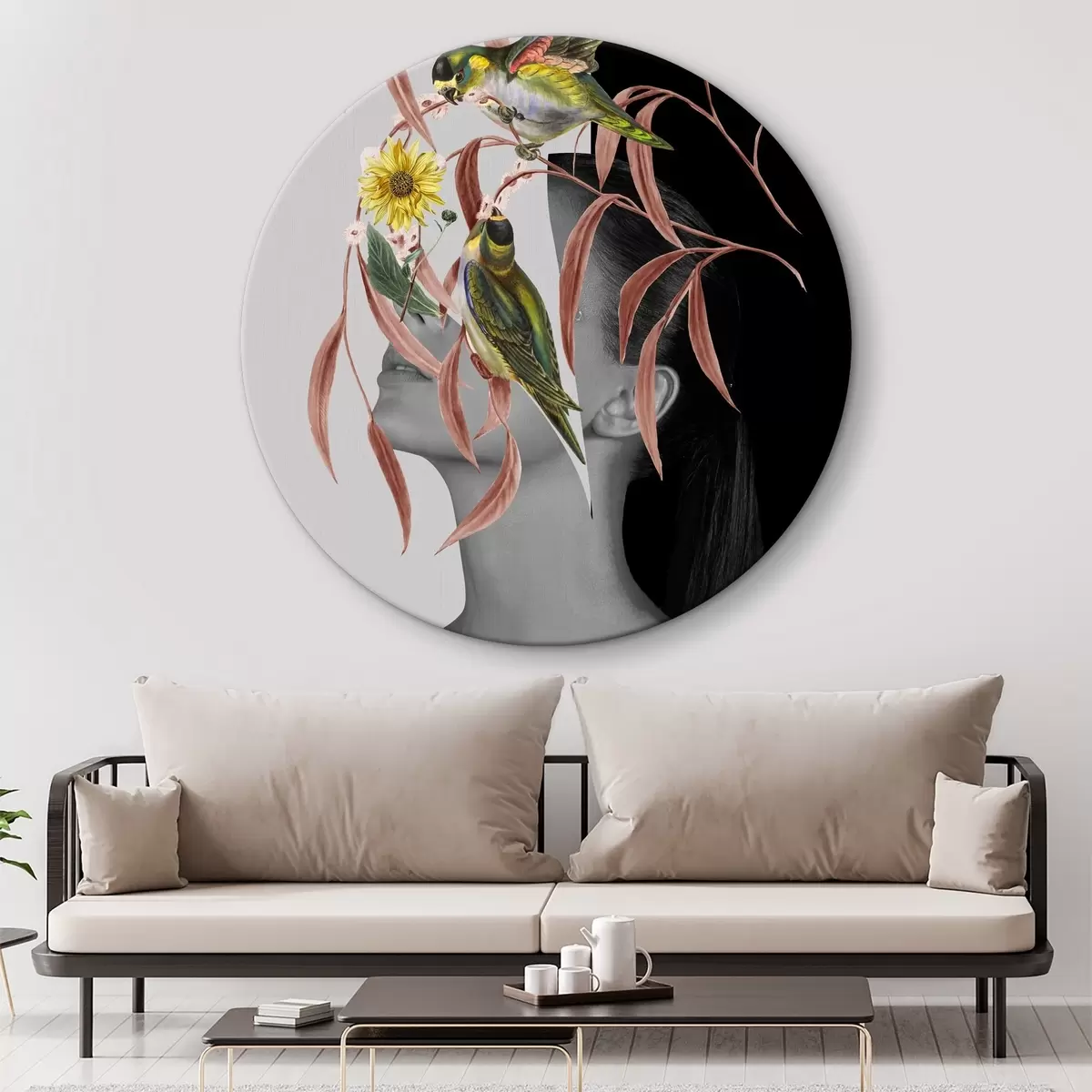Runde Wandbilder Pflanze, Vogel und Schnabel r00073